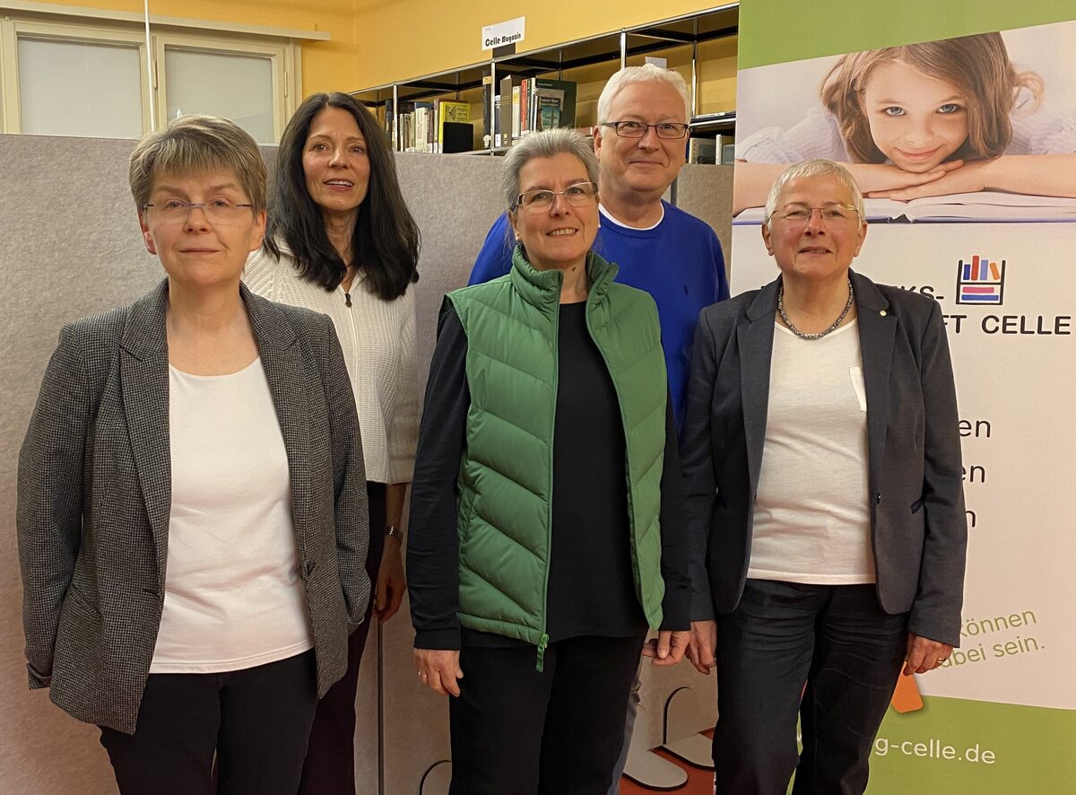 Auch eine Abordnung der Bibliotheksgesellschaft Celle ließ es sich nicht nehmen, dabei zu sein. Silke Wachsmuth-Uhrner, Vorsitzende der Bibliotheksgesellschaft, überreichte Petra Moderow, Leiterin der Stadtbibliothek Celle, einen Blumengruß zur offiziellen Wiedereröffnung.